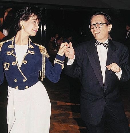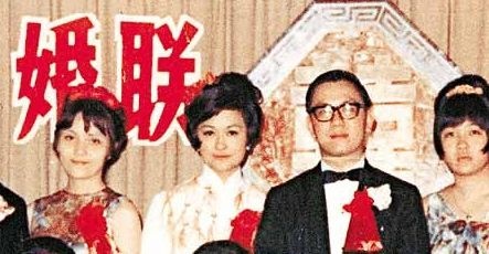 八八年除夕夜,黄霑找来金庸证婚,玩迎娶林燕妮。黄霑当众跪下求婚,成一时佳话。左起:倪震、林燕妮、金庸、李嘉欣、罗德丞。而李嘉欣之所以也出现在现场,是因为倪震乃黄霑干儿子,而当时李嘉欣是倪震女朋友。