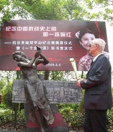 2009年6月6日,电影《色·戒》中女主人公的原型郑苹如青铜纪念像在上海福寿园揭幕,再现了中国抗战史上这位一度蒙受不白的女英雄真实形象。雕塑的基座是一座倾斜的十字架结构,横着的背景上模拟了当年西伯利亚皮货店刺杀汉奸丁默邨的情景,雕塑家采用模拟捆绑造型重现郑苹如将赴就义的一幕。
