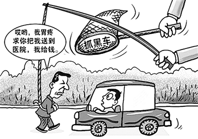 上海城市交通执法大队『钓鱼』执法,因触及了人们的道德底线而遭舆论质疑。此番舆论潮起《无辜私家车被以黑车罪名扣押,扣押过程野蛮暴力》的网帖。网帖称,2009年9月8日,上海白领张军(化名)因好心帮载自称胃痛要去医院的路人,结果却被城市交通执法大队认定为载客『黑车』,遭扣车与罚款1万元。黑车属于非法营运,根据《中华人民共和国道路运输条例》第六十四条规定,未取得道路运输经营许可,擅自从事道路运输经营的,由县级以上道路运输管理机构责令停止经营;有违法所得的,没收违法所得,处违法所得2倍以上10倍以下的罚款;没有违法所得或者违法所得不足2万元的,处3万元以上10万元以下的罚款;构成犯罪的,依法追究刑事责任。