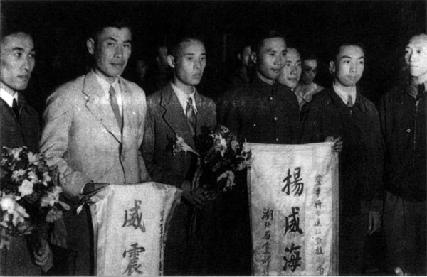 图为孔祥熙(左一)等亲自到汉口王家墩机场迎接远征机组人员等凯旋。