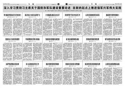 2014年4月2日,解放军报第6版整版刊登《深入学习贯彻习主席关于国防和军队建设重要论述在新的起点上推进强军兴军伟大实践》文章,其中包括空军司令员、七大军区司令员、二炮副司令员、武警部队司令员等署名文章,从多个角度阐述中国梦、强军梦,支持习主席指示。