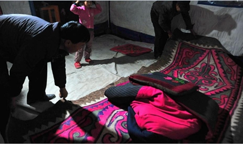 地震之前,新疆刚刚经过一场大范围寒潮天气,北疆大部分地区已经下雪。特别是入夜之后,气温下降至零下6摄氏度。由于不少牧民的房屋已经成为危房,当地应急部门为受灾群众搭建了临时帐篷,保证所有被转移安置的牧民不在户外过夜。