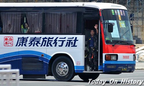 据《文汇报》报道 香港康泰旅行团在菲律宾遭枪手劫持事件最终血腥收场,警察强攻巴士击毙枪手,导致至少8名人质死亡。