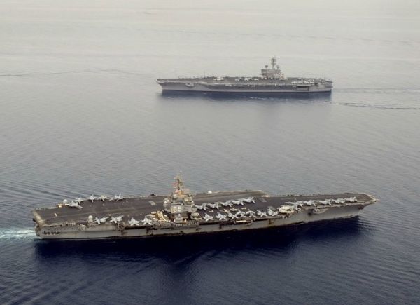 2012年6月 企业号在船厂与最新的乔治布什号CVN-77相遇