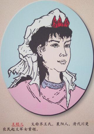王聪儿(1777-1798年6月5日(农历四月二十一日),湖北襄阳(今湖北襄樊)人,江湖艺人出生。参加白莲教起义后,她曾任义军总指挥,也就是八路义军统帅,是一个貌美如花,德行高尚,武艺高强,有勇有谋的女英雄。