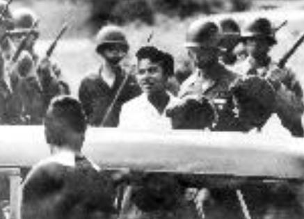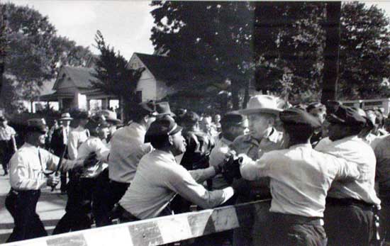 支持种族隔离的州长福布斯派出大量国民警卫队士兵和警察企图阻止黑人学生入学